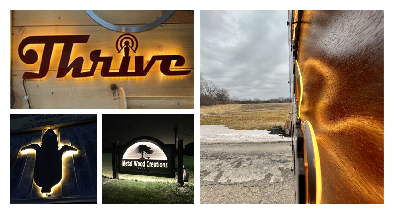 Custom fabricated or flat cut metal signs with choices of LED lighting to illuminate your custom message.