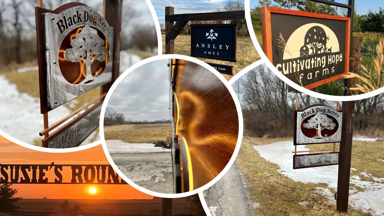 Stand-alone post mount, surface mount metal signs fabricated in our Iowa shop. From small to large, we make them all. Our handcrafted wood and metal signs stand out from the rest. Thats why many people choose us for residential or acreage signs, cabin signs, airBNB signs, guest house signs, and more.